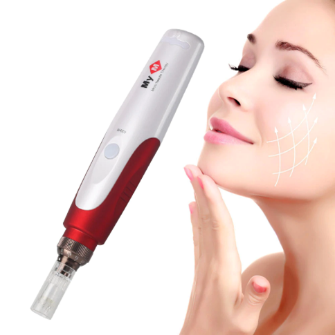 dispositivo estético en forma de lápiz (microneedling) que utiliza múltiples microagujas para realizar punciones cutáneas, estimulando la producción natural de colágeno y elastina.